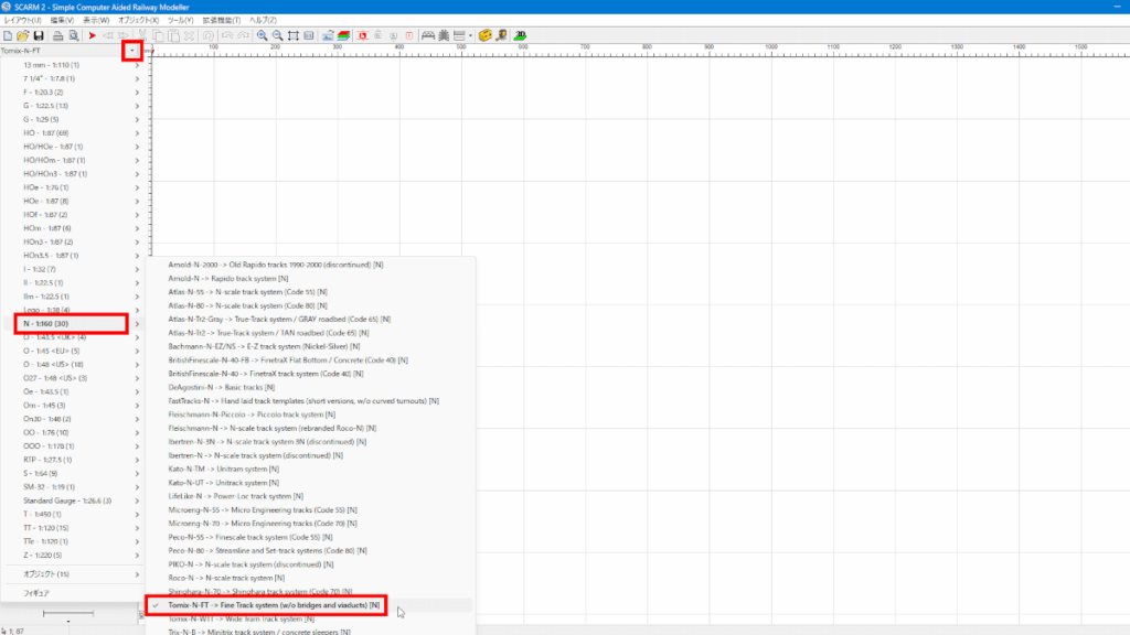 2. 表示された一覧から「N – 1:160」を選ぶ(Nゲージ用)
