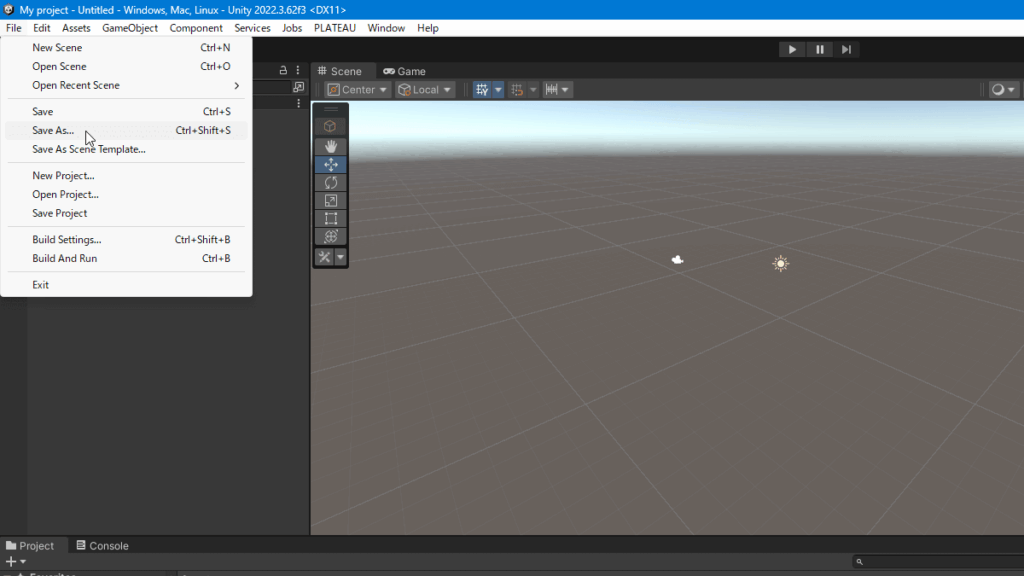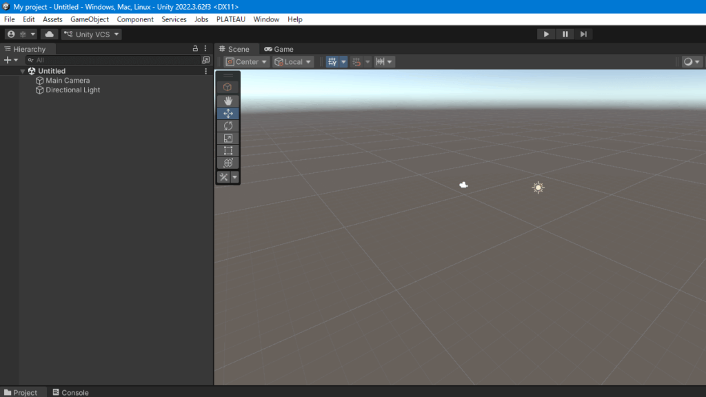 起動後、Unity 画面上部のメニューに「PLATEAU」が追加されているか確認してください。表示されていれば成功です。