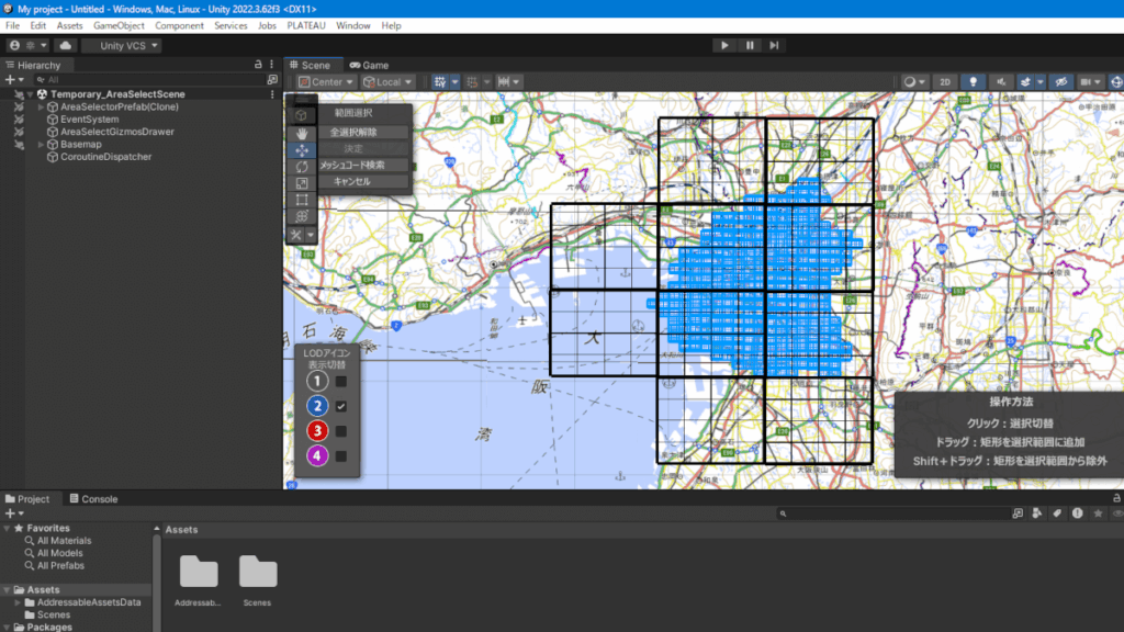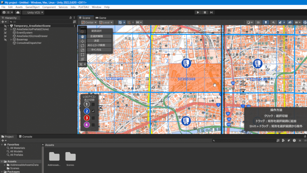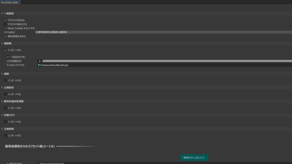 PLATEAUの3D都市モデルは、通常のUnityアセットとは比較にならないほど巨大です。何も設定せずに読み込むと、