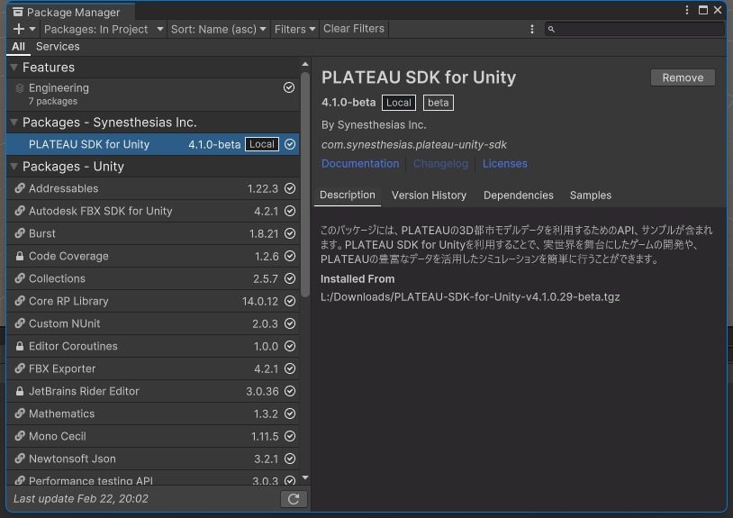 画面左側の一覧に「PLATEAU SDK for Unity」が追加されているか確認してください。表示されていれば成功です。