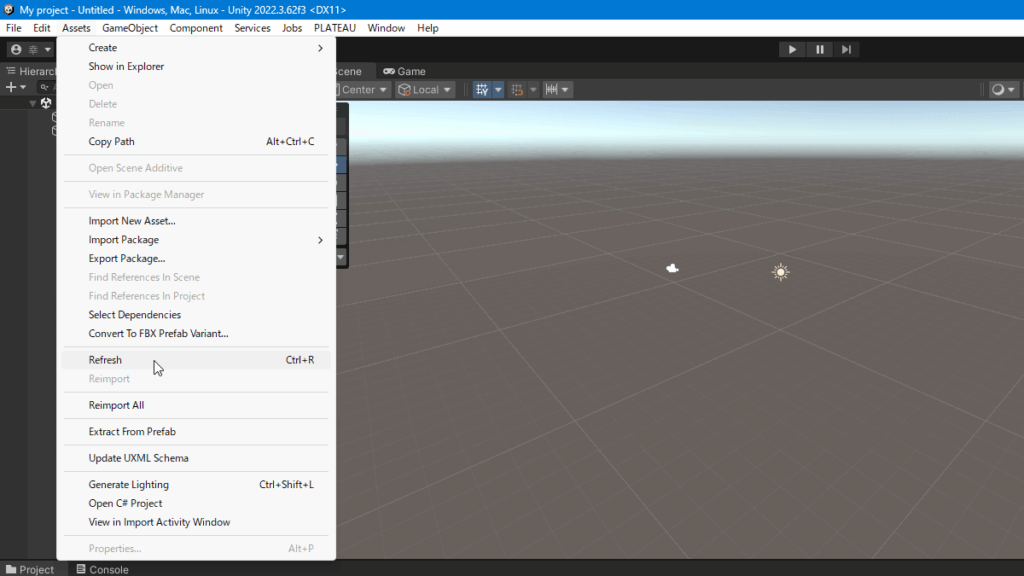 これで即座に Refresh が実行されます。PLATEAU のデータ追加後や、外部でファイルを変更した場合は、この操作で更新してください。