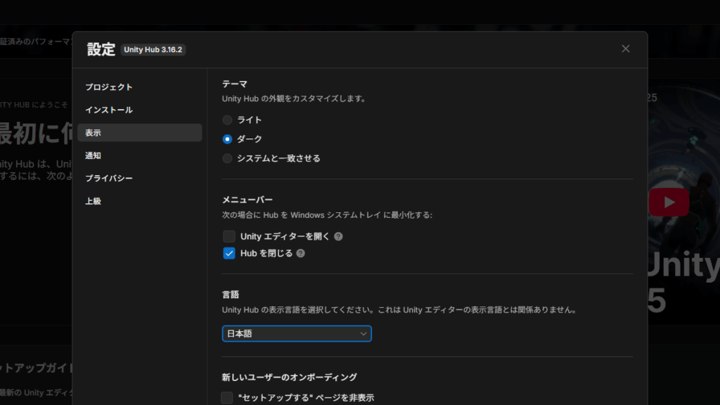 1. ダウンロードしたファイル(UnityHubSetup-x64.exe)を実行(ダブルクリック)します