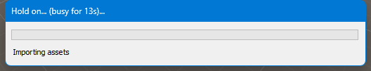 その後、筆者の環境では Unity が「Importing assets」のまま処理が進まなくなりました。この状態が20分以上続いたため、タスクマネージャーから Unity Hub を強制終了しました。